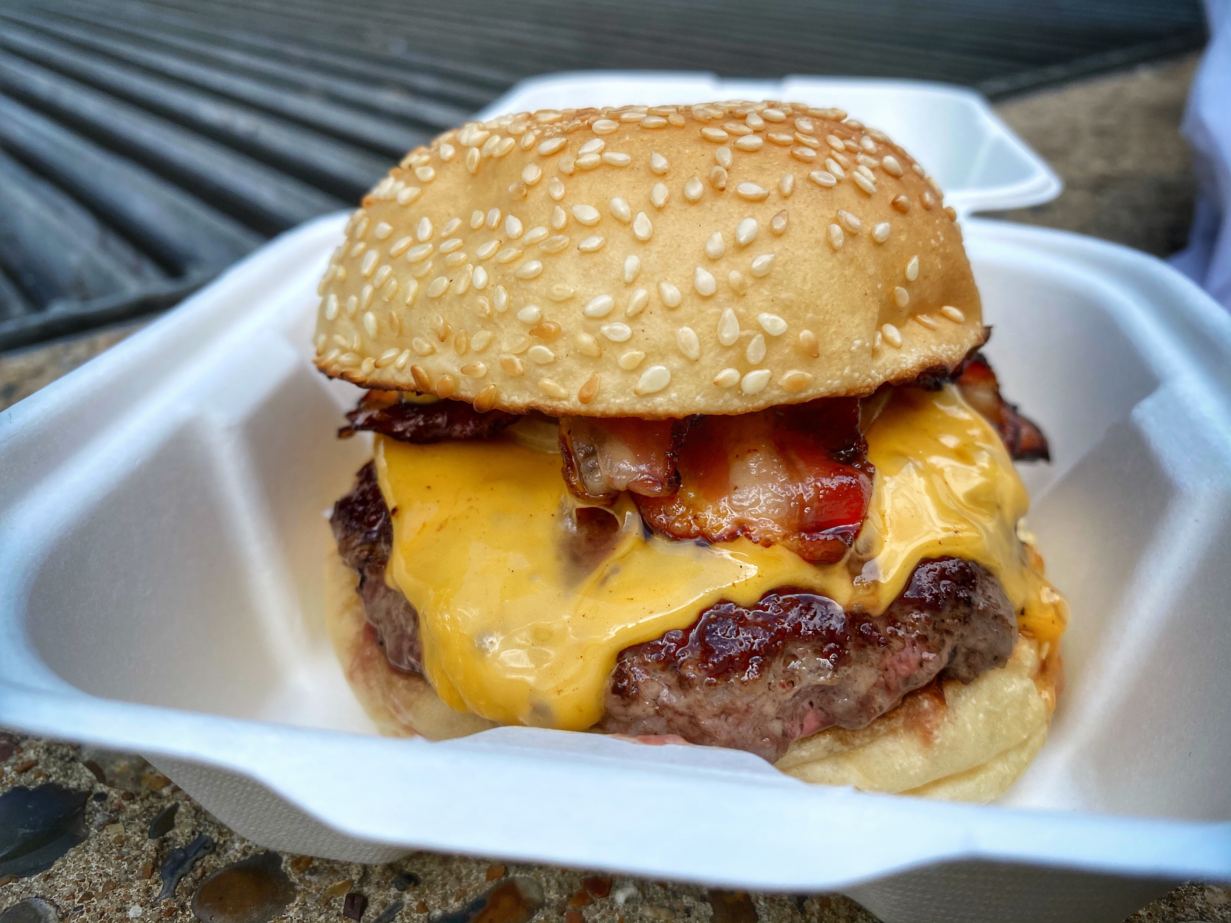 I’ll complain about the complete absence of social distancing another time, probably after the inevitable second UK lockdown, which feels like it’s looming. But for now here’s a celebration of the best burger and beer I know, which one of my very best friends – I feel diminished when I don’t get to see him as much as I’d like. 2020 has been a very strange year.