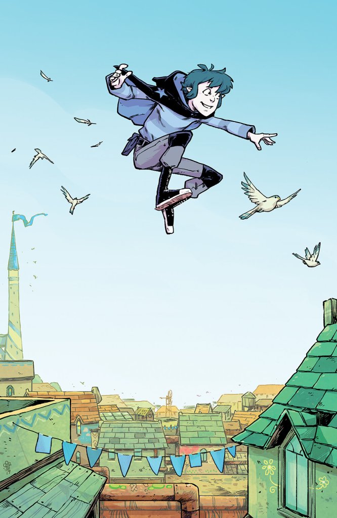 I have to say I’m getting bored with superhero comics and the same old characters doing the same old things before they’re reset ad infinitum. Boom! seem to be doing something different, and James Tynion IV’s latest – Wynd – is an exercise in what great storytellers are capable of when free from corporate diktat. Wynd is a boy with a magical heritage and lives in Pipetown in defiance of the humans’ Blood Laws, but he’s happy, he’s protected by his friend Oakley, and spends his breaks at the diner ogling Thorn Cherrywood, the royal gardener’s son, who in turn seems to have a thing for Pipetown’s Prince Yorik. Michael Dialynas’ cartoony, perfectly judged art is spot on for the young adult genre, happy and light, whilst never losing track of the dark subtext that keeps coming up – there’s war between humans and magical beings, which may still be continuing elsewhere, and the reluctant prince is in danger if he doesn’t sacrifice his principles and support it.