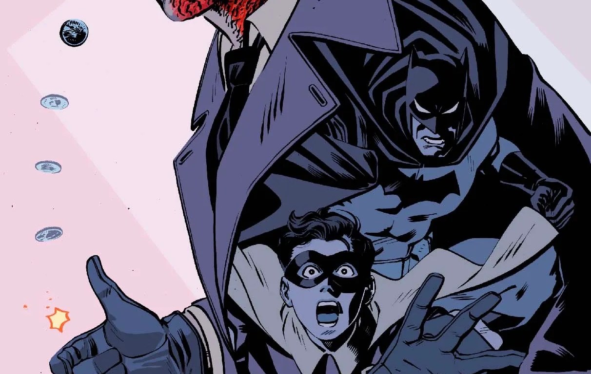 What works conceptually here is Waid’s focus on the tension between the dangerous real world absurdity of taking in an orphan and then redirecting him to fight your war (which may or may not be his) and the whimsical space that the comic book medium can allow to investigate this. I almost wish that the Child Protective Services people were genuinely sceptical about Dick’s safety with Bruce, rather than Batman, but I suppose that would take moving this to Vertigo for a smaller audience. And the star anyway is very much Dick the performer – very much the character Tom Taylor has spent a few years championing in the present day in Nightwing and the care that both writers have been taking with him recently is a delight. The Two Face subplot may be moving a little gently forwards, but with character work this good I’ve nothing to really complain about.